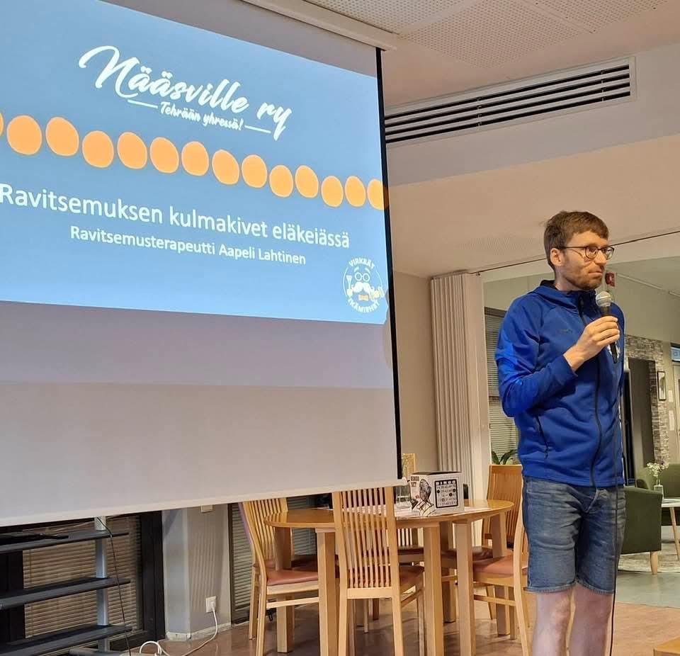 12.8.2025 jäsentapaaminen.Kokoonnuimme kesän jälkeen jäsentapaamiseen Keitaassa. Aapeli Lahtinen kertoi tärkeää tietoa "Ravisemuksesta kulmakivet eläkeiässä." Ilkka kertoi Kerhojen aloitusajat ja paikat. Riitta jakoi kyselyn, Oletko kiinnostunut Hallitustehtäviin. Lopuksi Riita ja Matti pyörittivät Pingoa. |